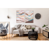 Ensemble de 2 Tableaux Huile 60X90 CM. Cadre en Chêne, Tons de Terre et Pastel Abstraits