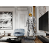 Figura realizada en fibra de vidrio y resina de poliester, acabado cromo y ba?o de oro brillo. foco led 3000 k.