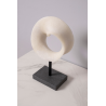 Escultura polyresina, círculo piedra blanca, base negro. 20x32x9cm
