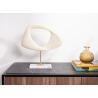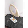 sculpture en polyrésine effet pierre blanche, base en métal doré et marbre blanc. 31x33x8 cm