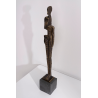 sculpture en polyrésine, figure humaine effet bronze et base effet pierre grise. 8x48x8 cm