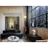Figura realizada en fibra de vidrio y resina de poliester, acabado bronce oscuro, base met?lica negro mate. Tulipa esf?rica de acr?lico acabado opal mate.
