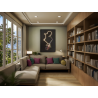 Dibujo en trazo de m?sico con saxof?n, composici?n con tira de luz led decorativa. Lienzo impreso, pegado sobre tabla y enmarcado en negro.