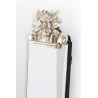 Espero con decoración en plateado. Medidas: 13x127cm. Este espejo tiene una decoración en la parte inferior y superior con volutas al estilo barroco en color plateado. Recomendamos el uso de un trapo humedo para su limpieza evitando el uso