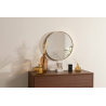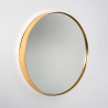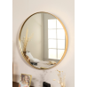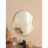 Espejo redondo dorado. Medidas: 51*51*4 cm. Ligereza visual y elegancia son las dos palabras que definen al espejo redondo. Su fino marco de metal dorado resalta su forma y es perfecto para colocar tanto en salones, comedores, recibidores e incluso baños, encajando en cualquier estilo decorativo por su simplicidad. Recomendamos su limpieza con un paño húmedo evitando el uso de productos químicos. No incluye tornillería para anclar en la pared.