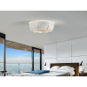 Plaf?n de 4 luces con tulipa compuesta por placas de policarbonato de superficie corrugada. Estructura realizada en metal, acabado blanco roto mate. Difusor inferior.