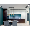 L?mpara realizada en metal acabado negro mate y oro. 3 Tulipas de cristal ambar. Regulable en altura.