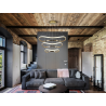 L?mpara de tres aros curvados, realizada en metal y aluminio. Acabado oro rosa brillo. Difusor de silicona opal. Altura regulable. 68W, 3.700lm, 3.000K. DIMABLE.