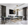 L?mpara realizada en metal, perfil curvo acabado pan de oro y canop? dorado. Difusor de piezas de acr?lico transparente. 64W LED. 3.588 lm. 3.000 K.