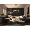 L?mpara realizada en metal y aluminio acabado dorado. Difusor de silicona opal. 52W LED. 3.800 lm. 3.000 K. DIMABLE.