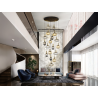L?mpara de 18 luces realizada en metal acabado negro mate, con detalles de lat?n satinado. Tulipas de cristal moldeado en acabados transparente, ambar y gris smoke espejado. Regulable en altura. DIMABLE. Incluye mando a distancia.