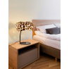 L?mpara de sobremesa de 3 luces realizada en metal con ba?o de oro rosa y pintura marr?n oscuro. Difusor acr?lico interior.