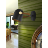 L?mpara de pared de 1 luz, realizada en metal acabado en negro mate y oro, con detalles en lat?n pulido. Asa forrada en polipiel marr?n. Foco giratorio.