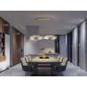 L?mpara realizada en metal y aluminio, acabado oro mate. Difusor de metacrilato microimpreso curvado. Altura regulable. 21W LED, 1.200 lm, 3.000K.