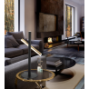 L?mpara de sobremesa de 2 luces LED. Realizada en metal acabado oro brillo y negro mate. Difusor acr?lico opal. 10W LED, 900 lm, 3.000 K.