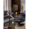 Lámpara de sobremesa de 2 luces LED. Realizada en metal acabado oro brillo y negro mate. Difusor acrílico opal. 10W LED, 900 lm, 3.000 K.