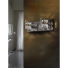 L?mpara de pared de 2 luces realizada en metal acabado cromo. Dos dobles tulipas, las exteriores de cristal moldeado y las interiores de copens facetados de cristal transparente y smoke.