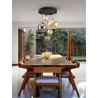 L?mpara de 5 luces realizada en metal acabado negro mate, con detalles de lat?n satinado. Tulipas de cristal esf?ricas de 12 y 20 cm, en acabados ambar y gris smoke espejado. Regulable en altura.