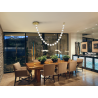 L?mpara realizada en metal acabado dorado y 21 tulipas de acr?lico transparente. 75,50W LED, 3000K. 7.129 lm Incluye driver TRIAC y SET DIMADO.