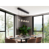 Lampara de 5 luces, realizada en metal acabado negro mate con detalles dorados y tulipas de acr?lico transparente. 21W LED, 1339 lm, 3000K. Incluye driver TRIAC y SET DIMADO.