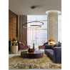 L?mpara realizada en metal y aluminio acabado negro mate arenado. Difusor opal de silicona. 54W LED. 2.700 lm. 3.000 K.