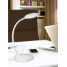 L?mpara sobremesa de estudio LED, realizada en pl?stico color blanco brillo. Brazo flexible. Intensidad regulable con pulsador t?ctil. 6W LED. 750 lm. 4.000 K.