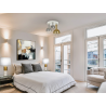 Plaf?n de techo realizado en metal, acabado blanco mate. Tulipas de cristal soplado de ?15, 20 y 25 cm, color gris smoke espejado y oro espejado. 15W LED, 1.542 lm, 3.000K.