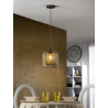 L?mpara de 1 luz realizada en metal lacado, color chocolate. Doble tulipa, interior de malla met?lica y exterior de cristal.