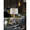 L?mpara sobremesa de 1 luz realizada en metacrilato. Pantalla de hilo tensado, de color plata.