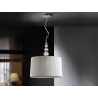 Lámpara de 3 luces realizada en acrílico transparente y metal cromado. Pantalla de hilo tensado de color plata con forro interior y difusor.