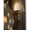 L?mpara de pared de 1 luz, realizada en cristal de color champ?n y lat?n. Pantalla encintada de color beis.