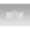 Pantalla textil blanca. Interior de vinilo cromado. Sistema especial de sujeci?n para sobremesa peque?o Domo. Difusor superior de metacrilato translucido.
