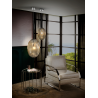 L?mpara de 1 luz , realizada en metal acabado cromo. Tulipa peque?a de cristal tono co?ac. Regulable en altura.