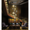 L?mpara de 13 luces, realizada en metal acabado cromo. Tulipas combinadas: grandes y peque?as. Dos tonos de cristal: co?ac y gris smoke espejado. Regulable en altura.