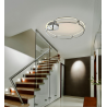 Plaf?n de techo LED grande, realizado en aluminio acabado cromo. Difusores de silicona opal. 65W LED, 5.850 lm, 3.000 K. DIMABLE. Incluye mando a distancia.