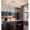 L?mpara LED grande, realizada en aluminio acabado cromo. Difusores de silicona opal. Regulable en altura. 65W LED, 5.850 lm, 3.000 K. DIMABLE.