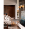 L?mpara de pie de 1 luz LED, realizada en aluminio cepillado y base de metal pintura mate, acabado oro rosa. Difusor de silicona opal. 32,4W LED, 2.250 lm, 3.000 K.
