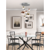 L?mpara de 9 luces, metal acabado cromo. Tulipas esf?ricas de 10cm, 12cm y 20cm, en policarbonato con interior texturizado y metal en cobre y lat?n satinados y cromo. Altura regulable. 54W LED. 3.000K. 3.780 lm. DIMABLE. Driver TRIAC y SET DIMADO.
