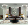 L?mpara de 14 luces LED. Realizada en metal acabado cromo. Tulipas esf?ricas ?10, 12, 20 cm de policarbonato con interior texturizado y metal acabado cromado. Altura regulable, m?x. 500cm. 78W LED. 3000K. 5502 lm. DIMABLE. Driver TRIAC y SET DIMADO.