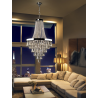 L?mpara de 22 luces realizada en metal acabado cromo, cadenas de bolas de cristal y l?grimas grandes de cristal fum? facetado K9. Incluida funda de terciopelo negro para cadena.