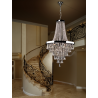 L?mpara de 22 luces realizada en metal acabado cromo, cadenas de bolas de cristal y l?grimas grandes de cristal fum? facetado K9. Incluida funda de terciopelo negro para cadena. DIMABLE. Incluye mando a distancia