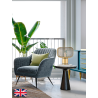 L?mpara de sobremesa de 1 luz realizada en metal, con tulipa de malla met?lica, acabado pintura oro. Clavija tipo G (Inglesa)