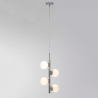 PLAFONNIER TUBE EN MÉTAL CHROMÉ DORÉ ET ABAT-JOUR SPHÈRE EN VERRE BLANC