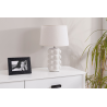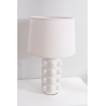 LÁMPARA CERÁMICA 25*44CM, BLANCA MATE ESFERAS. PANTALLA LINO BLANCO