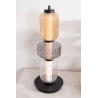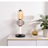 LÁMPARA SOBREMESA BOHEME. CRISTAL TALLADO ÁMBAR, TRANSPARENTE Y AHÚMADO. BASE NEGRA