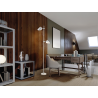 L?mpara de pie en metal y aluminio, color blanco mate, difusor opal. Pulsador t?ctil y CONTROL REMOTO. 2 luces regulables en altura y orientables, funciones simultaneas e independientes: luz dimable, temperatura de color regulable. 20W LED, 1800 lm,