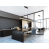 L?mpara realizada en aluminio acabado gris cepillado y acero en negro mate. Difusor: acr?lico transparente texturizado. Altura regulable: Sistema sube y baja. Iluminaci?n LED 24W, CCT: 2700-5000K. 1.600 lm. DIMABLE. Incluye mando a distancia.
