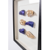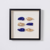 CADRE NOIR TABLEAU VITRINE, HUÎTRES DORÉES ET BLEUES, 50*50 CM