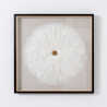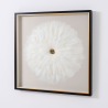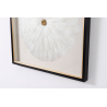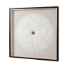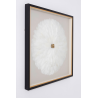 TABLEAU VITRINE 80*80 CM, CADRE NOIR ET OR, PLUMES BLANCHES