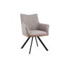 Fauteuil Leia, Siège Pivotant 360º avec Retour. Tissu Beige et Brun Terre Résistant aux Taches, Pieds Métalliques Noirs